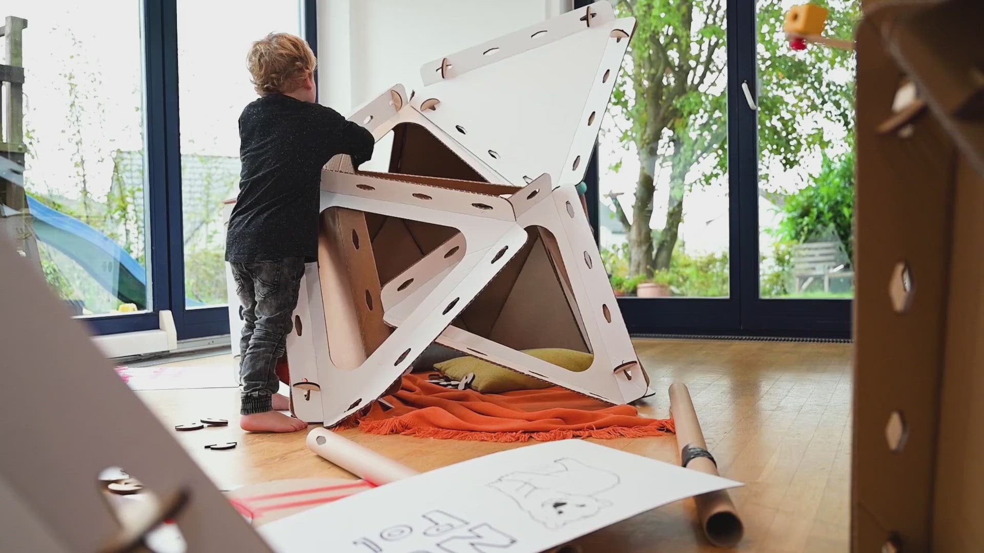 Das Triglu ist ein Spielhaus/höhle für den Einsatz in eurem Wohn- oder Spielzimmer. Unsere Idee im Corona-Lockdown war es, eine einzigartige und vielfältige Spielmöglichkeit für unsere Kinder zu entwickeln. Und wir wissen alle, wie sehr Kinder es lieben Höhlen zu bauen, oder? Damit das künftig nicht mehr mit Kissen und Decken im Chaos endet, haben wir das Triglu als innovative Lösung entwickelt. Dabei war es uns vor allem wichtig den Kindern so viel Freiheit und Möglichkeit im Spiel und Gestaltung zu geben wir möglich - denn Langweile mag niemand!